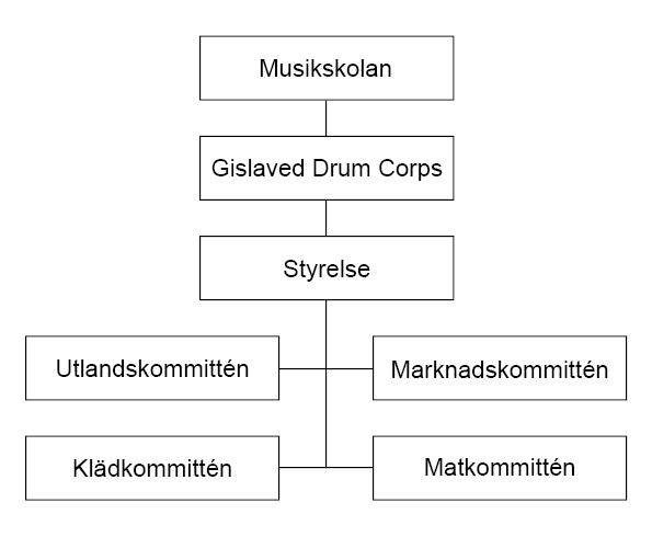 För att kunna driva en stor verksamhet krävs en bra och genomtänkt organisation. I toppen för verksamheten finns styrelsen var främsta uppgift är att underlätta det musikaliska arbetet för ledare och medlemmar. Därunder arbetar en mängd vårdnadshavare och hjälpsupporters i olika kommittér; Utlandskommittén som planerar vår årliga utlandsresa, Matkommittén som förser orkestern och drill med fika och mat, Klädkommittén som ser till att orkestern alltid i alla sammanhang är välklädd, och inte minst Marknadskommittén som ser till att sponsorerna varje år fortsätter att stödja oss.